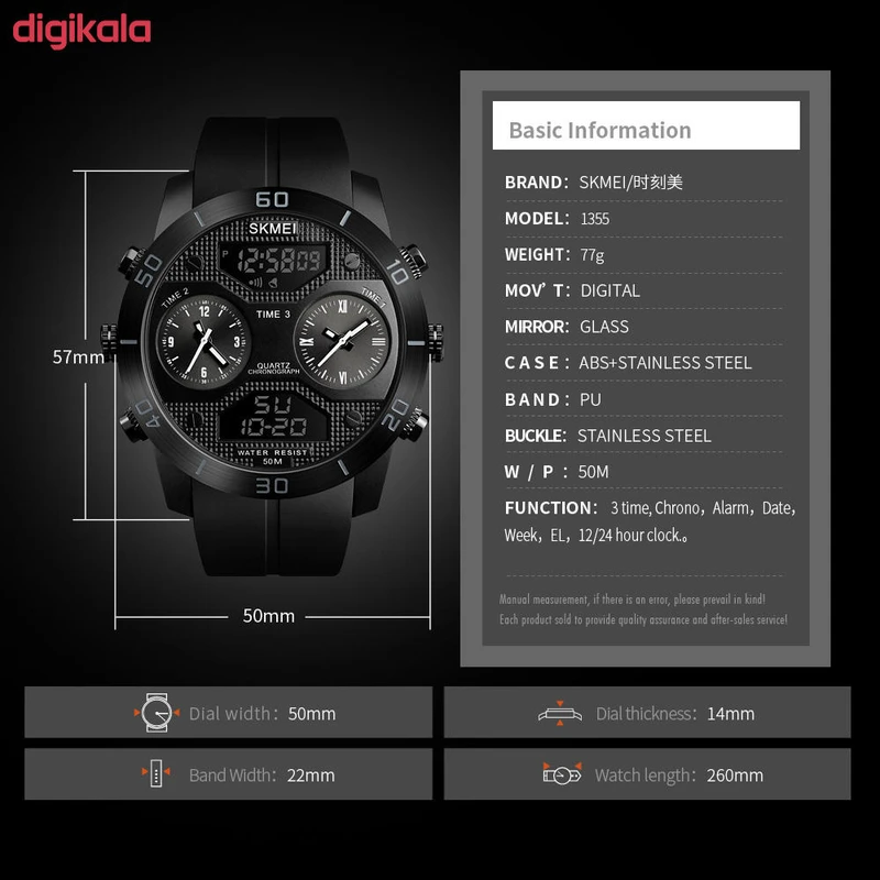 ساعت مچی عقربهای دیجیتال اسکمی مدل 1355BK یکی از محصولات پرطرفدار برند SKMEI است که با طراحی ترکیبی آنالوگ و دیجیتال، امکانات متنوع و قیمت مناسب، توجه بسیاری از کاربران را به خود جلب کرده است. در ادامه، به بررسی جامع این مدل از جنبههای مختلف میپردازیم.